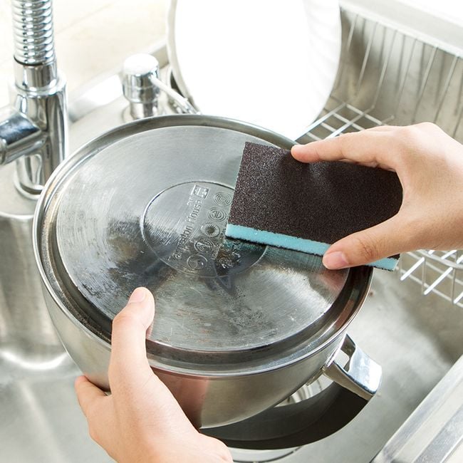 La esponja es adecuada para limpiar cualquier superficie. Se enfrenta perfectamente a la suciedad incrustada y el óxido.