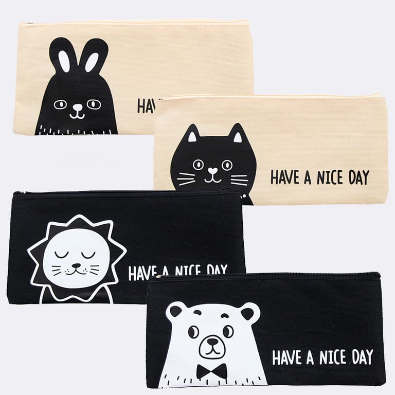 Estuche moderno para útiles escolares para niños en edad escolar o estudiantes de secundaria y universidad. Está hecho de lona, que es ligera y de diseño. Este estuche se puede pedir en 4 variantes.