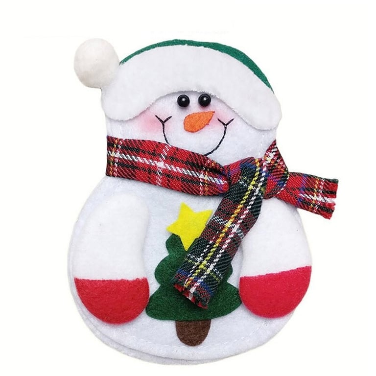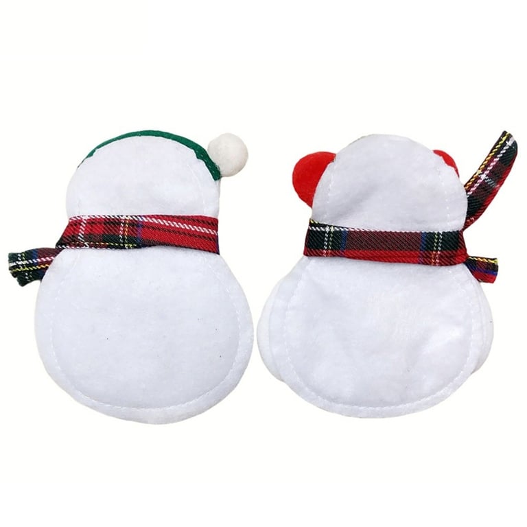 Divertida decoración para la mesa navideña - estuches para cubiertos con motivo de muñeco de nieve.