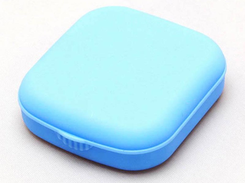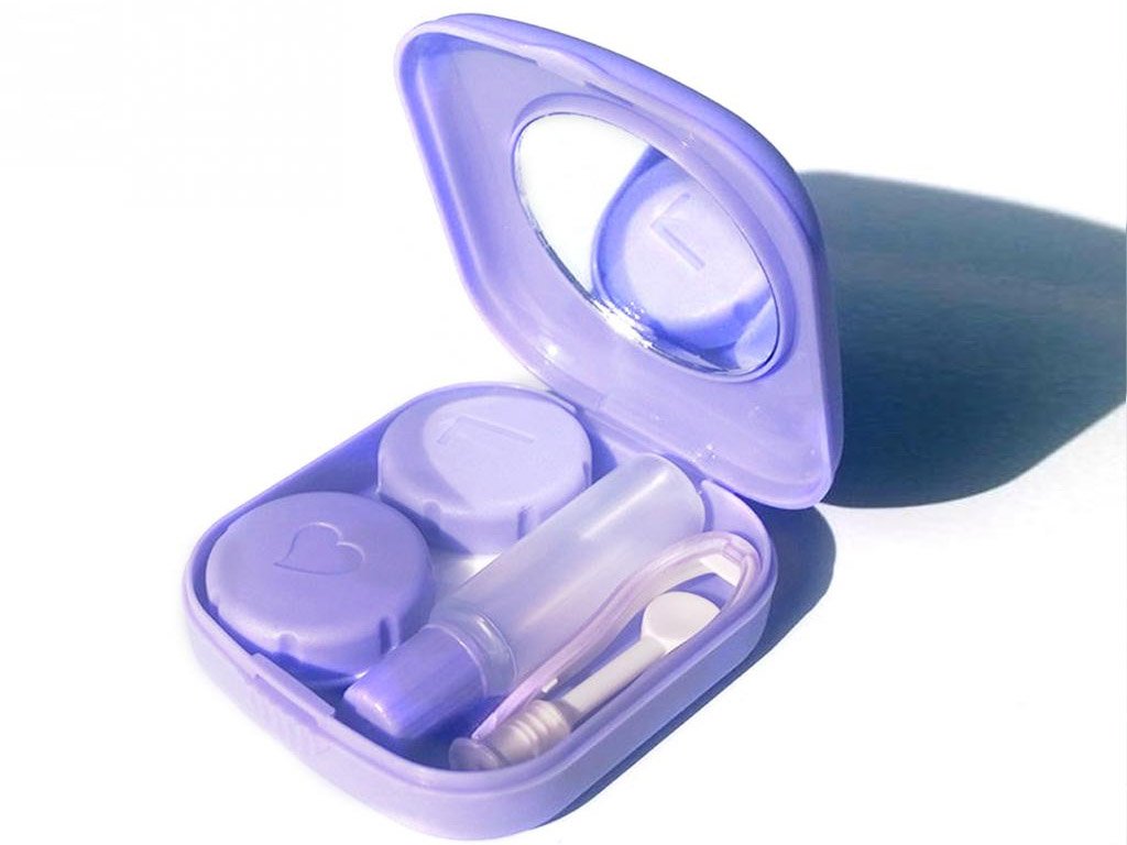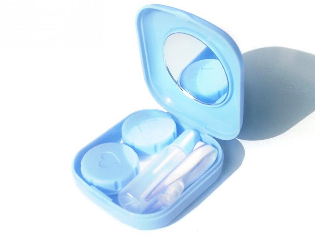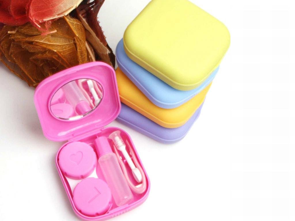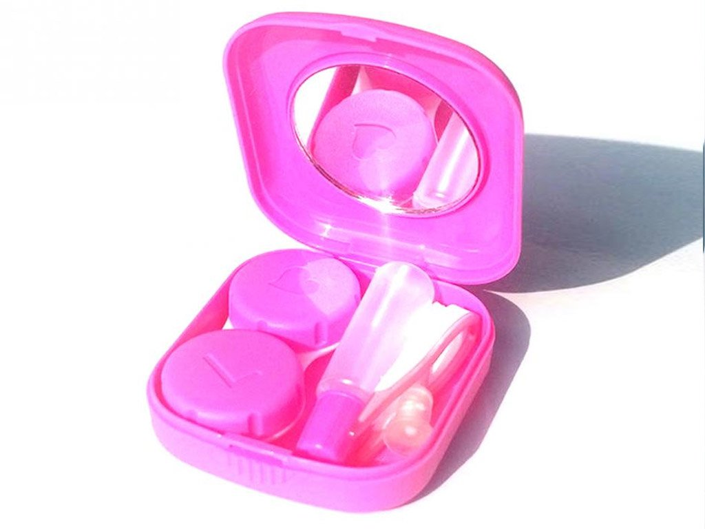 Estuche práctico para todas las necesidades de cuidado de lentes de contacto. Está hecho de plástico en 4 colores diferentes.