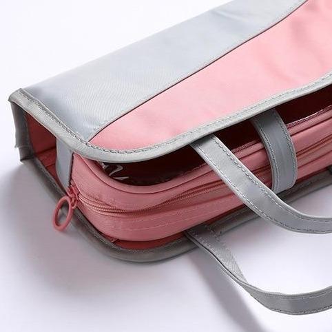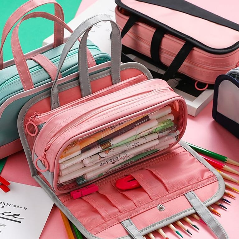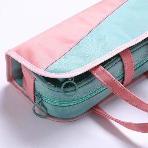 Estuche práctico para la escuela, que es muy espacioso. El estuche viene en una funda que tiene asas para sostenerlo y se puede sacar el estuche de esta funda y usarlo como un estuche clásico.
