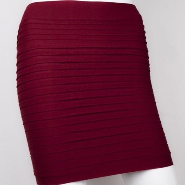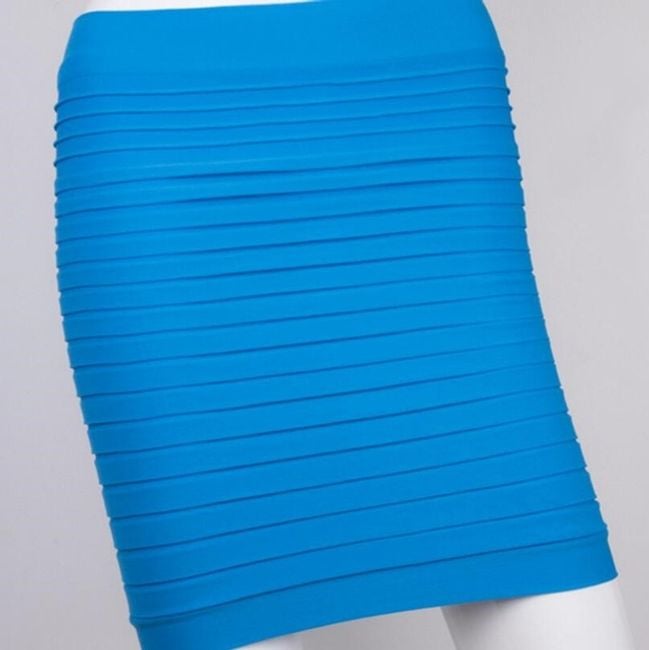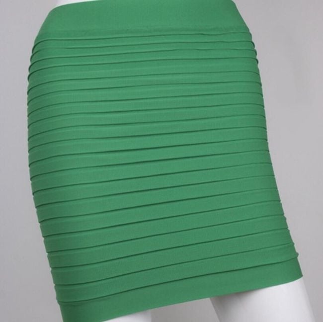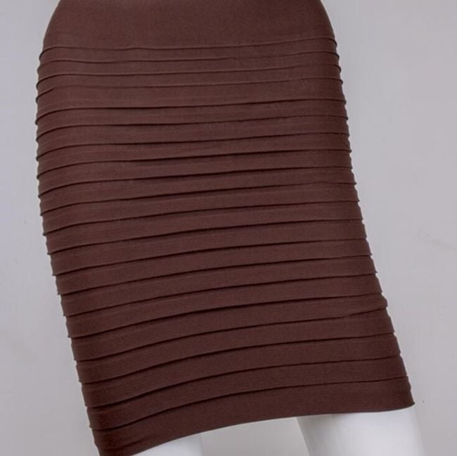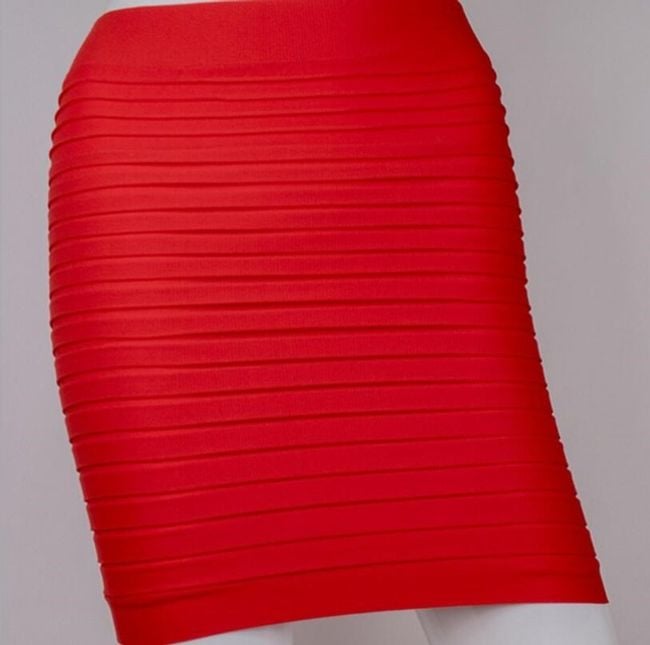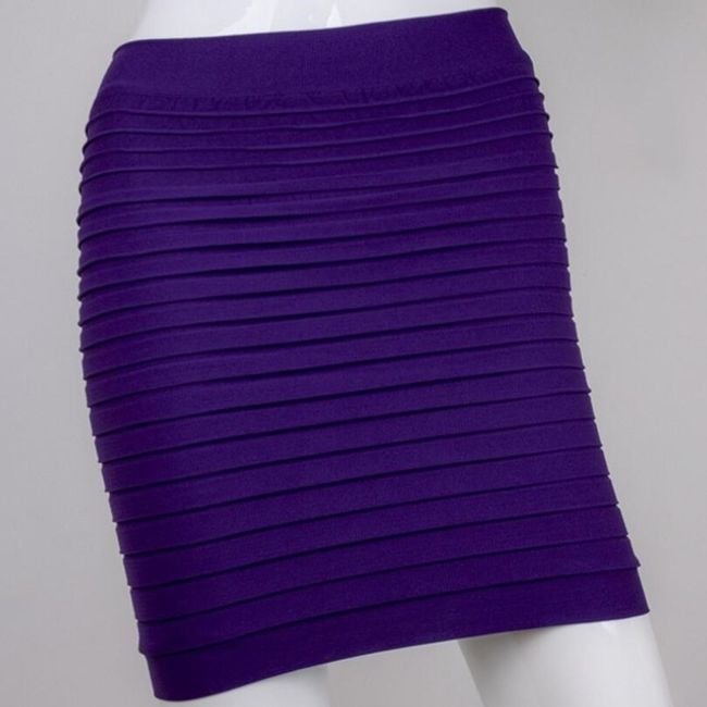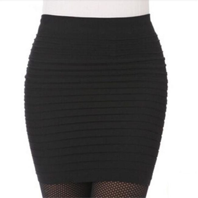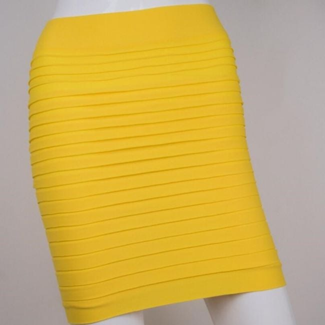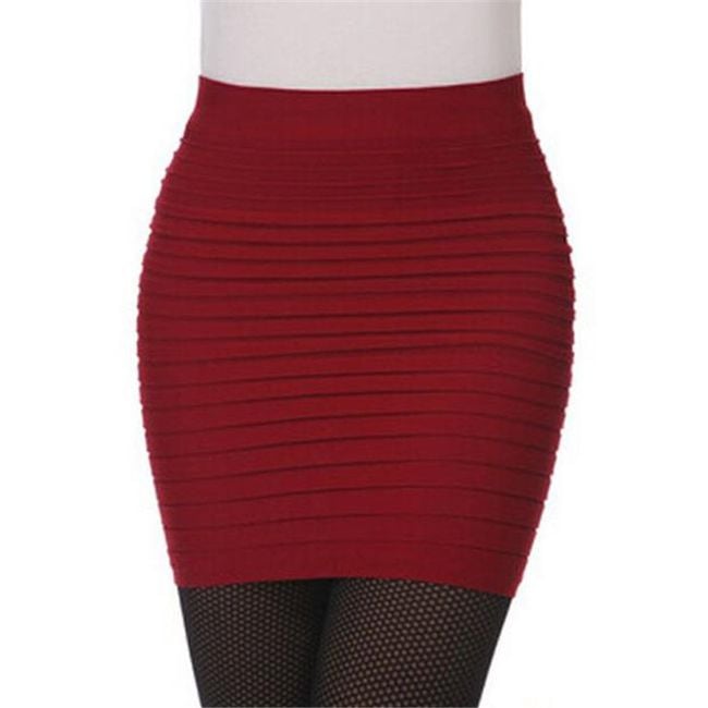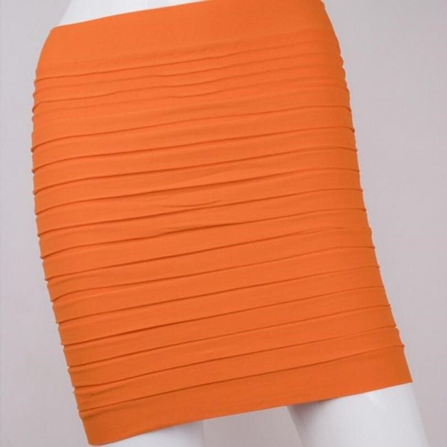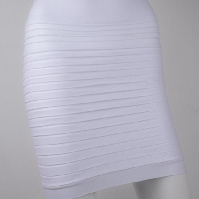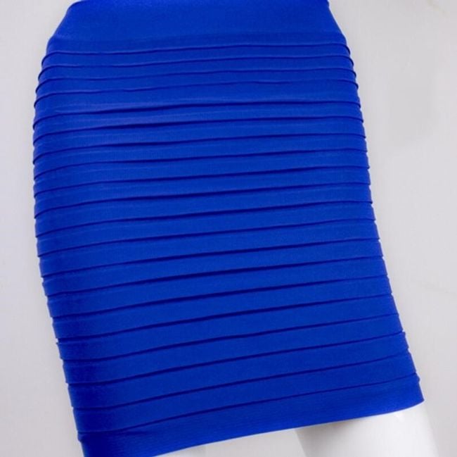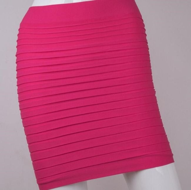 La falda elástica llega aproximadamente a la mitad de los muslos. Está adornada con rayas horizontales. Tienes varias opciones de colores.
