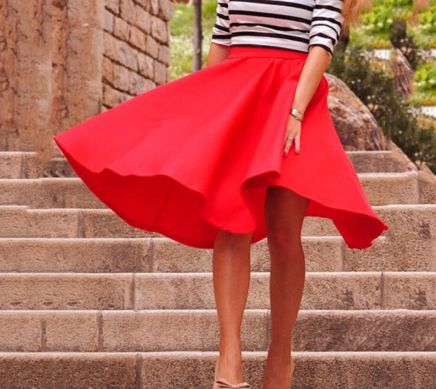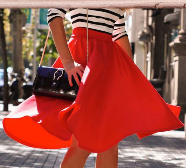 Falda de mujer de estilo acampanado de algodón de colores.