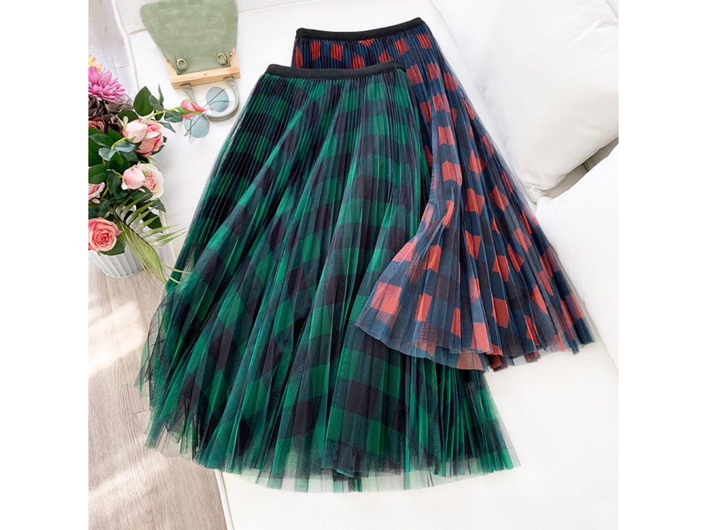 Falda de tul para mujer con patrón de cuadros
