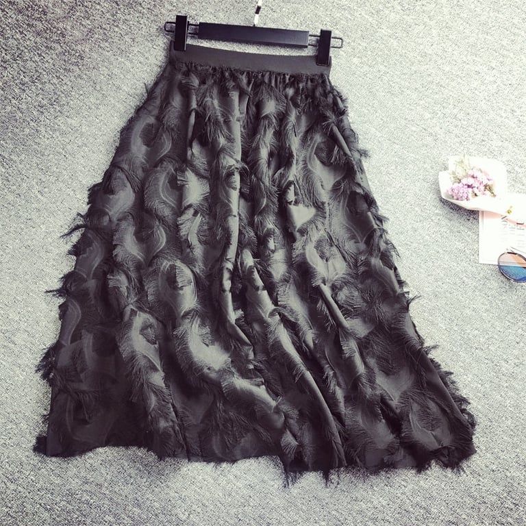 Falda elegante para mujer con plumas Lilyana – colección 2025.