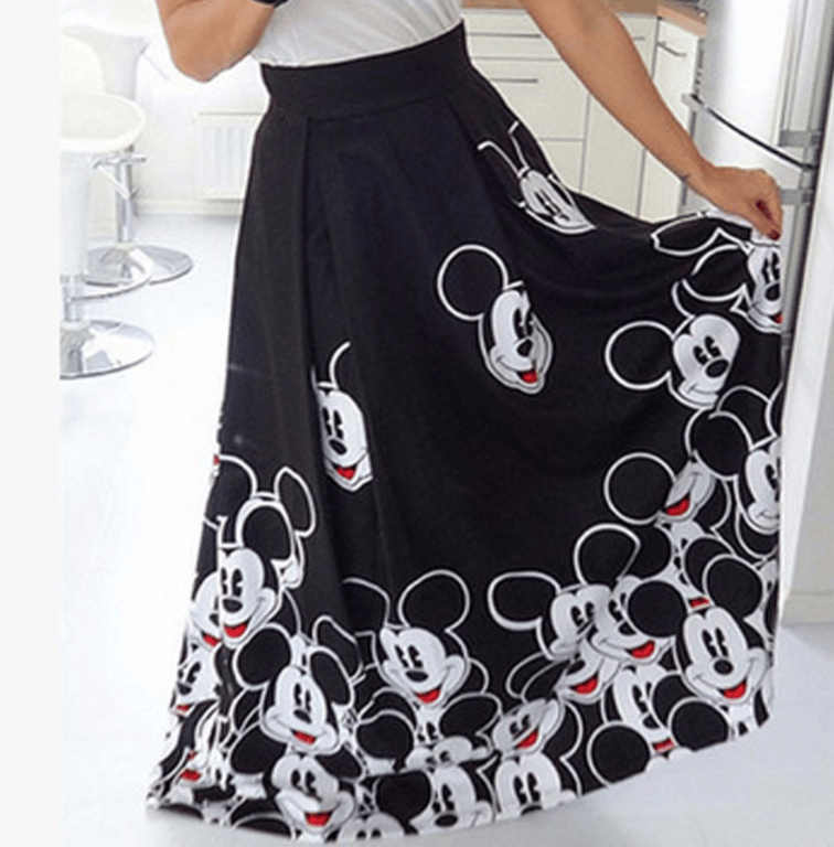 Falda larga de mujer con el motivo de Mickey Mouse para un look moderno y original.