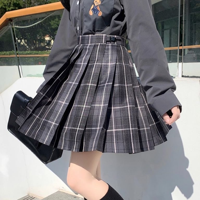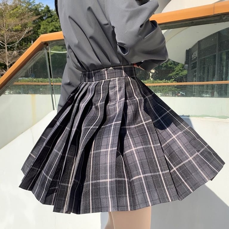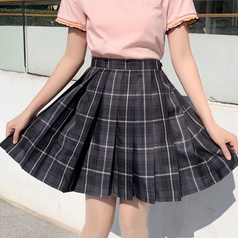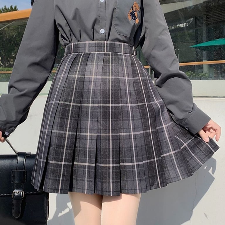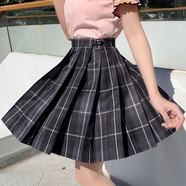 Falda estilosa que tiene un corte en A y está adornada con un patrón de cuadros.