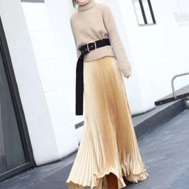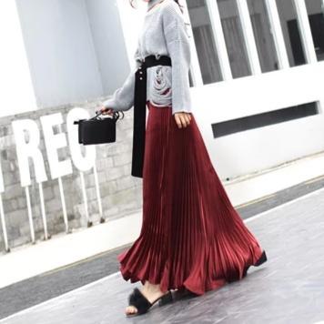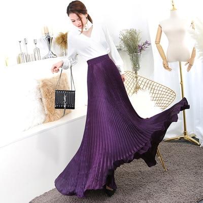 Falda plisada brillante de moda de 100 cm de largo para un look elegante en cualquier ocasión. Con cintura elástica.