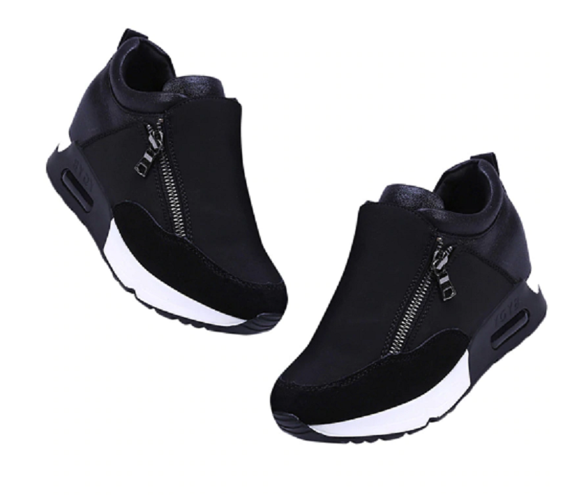 Las zapatillas están hechas de material de alta calidad y se cierran con cremallera.