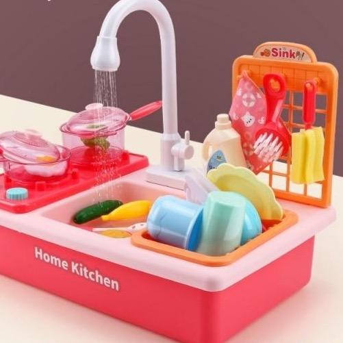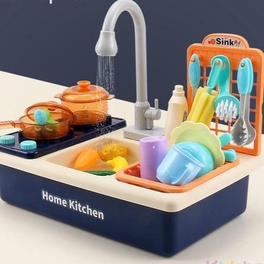 Juguete infantil fregadero de cocina con utensilios. Juguete educativo para niños que desarrolla la capacidad de agarre, pensamiento, coordinación de movimientos y otros sentidos.
