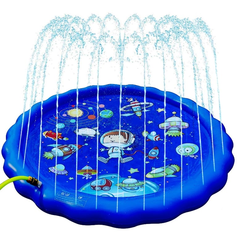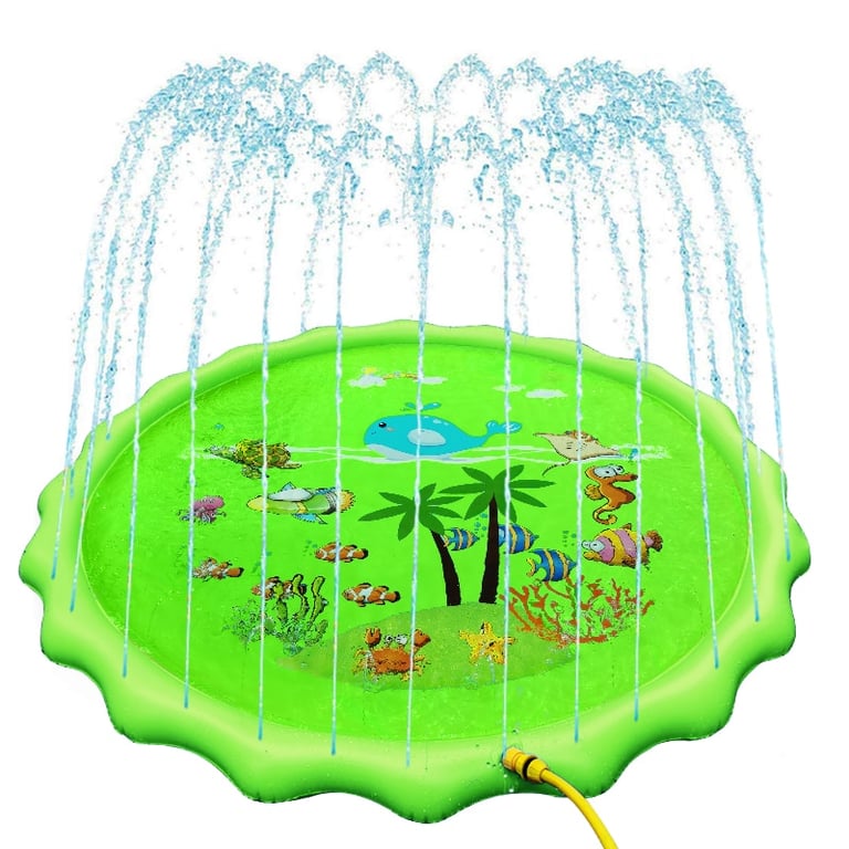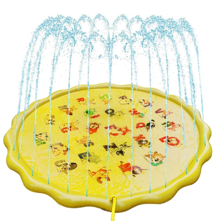• Fuente de jardín para niños con chorros de agua incorporados alrededor del área de juego.