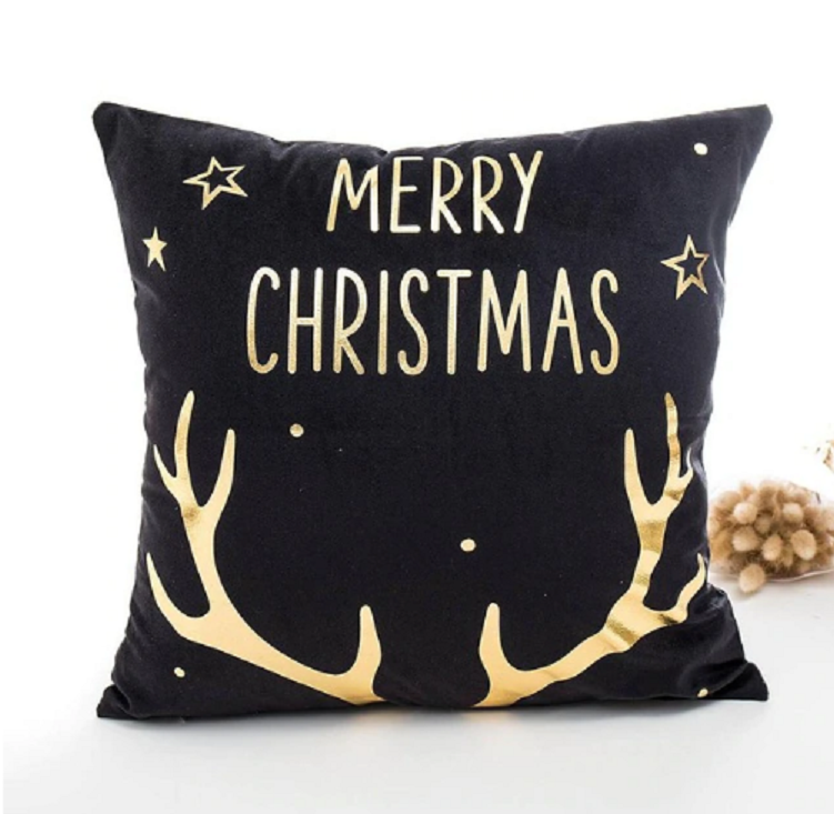 Decora tu sofá o cama con esta funda de cojín con la inscripción Feliz Navidad.