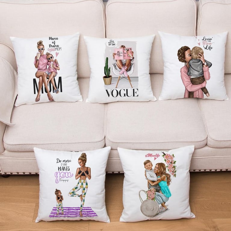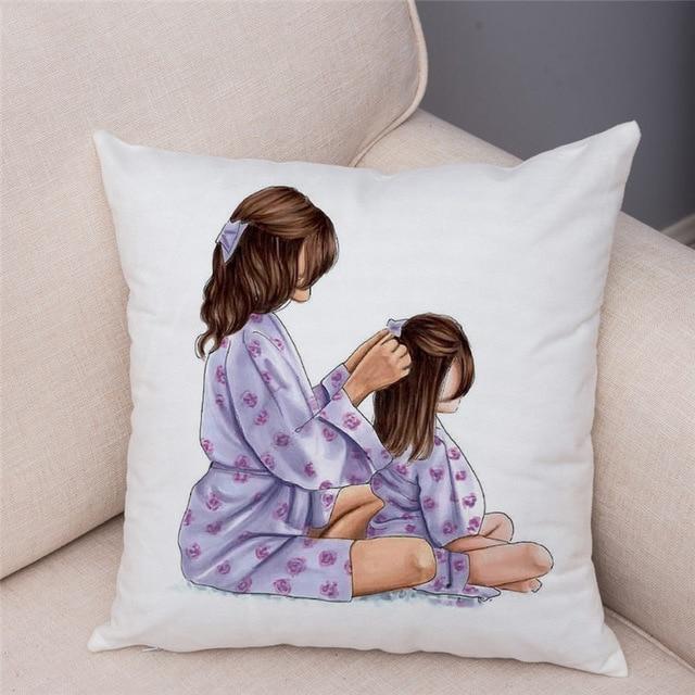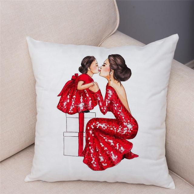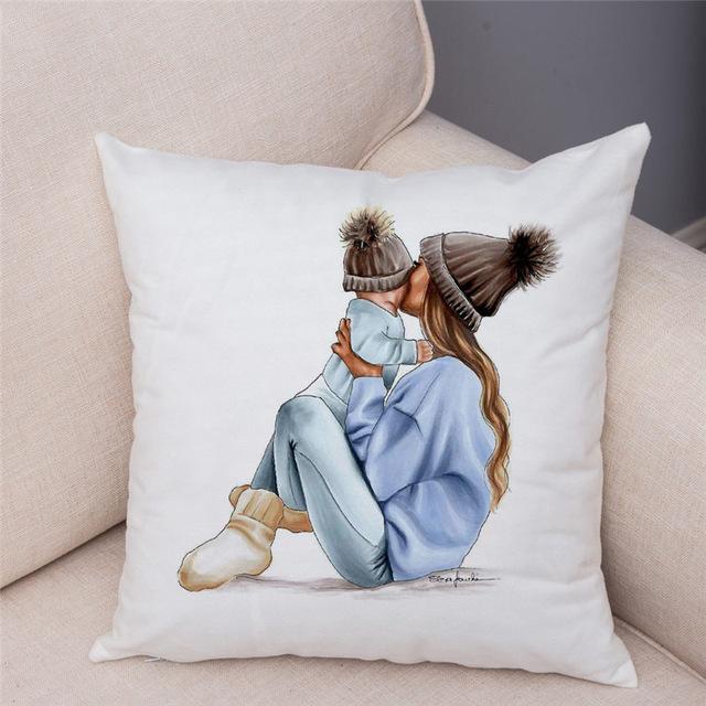 Bonitos motivos de mamá con bebé en la funda de algodón. Tamaño de la funda 45 x 45 cm.