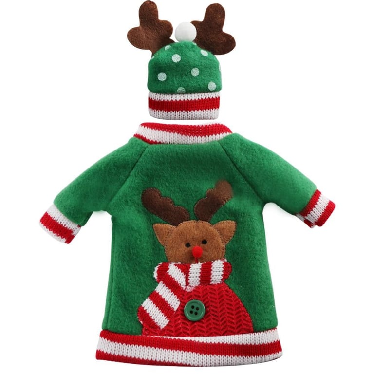 Divertida funda de regalo navideña para botella - suéter y gorro.