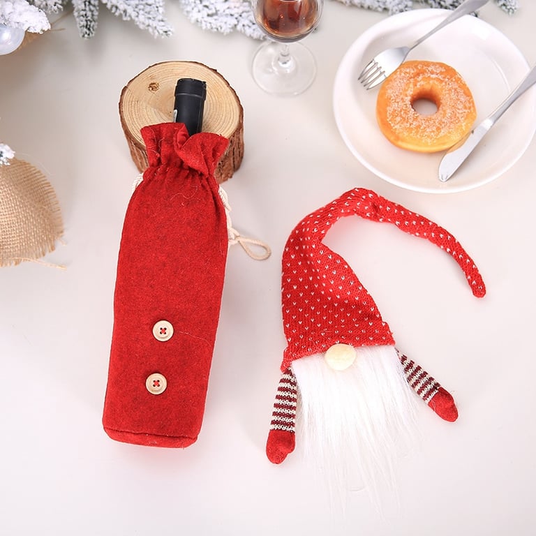 Divertida decoración navideña o regalo: funda textil para botella en forma de duende navideño.