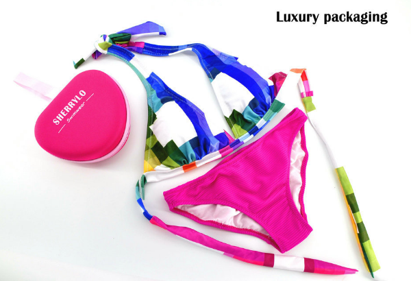 Funda rígida de plástico hermosa en color rosa para trajes de baño.