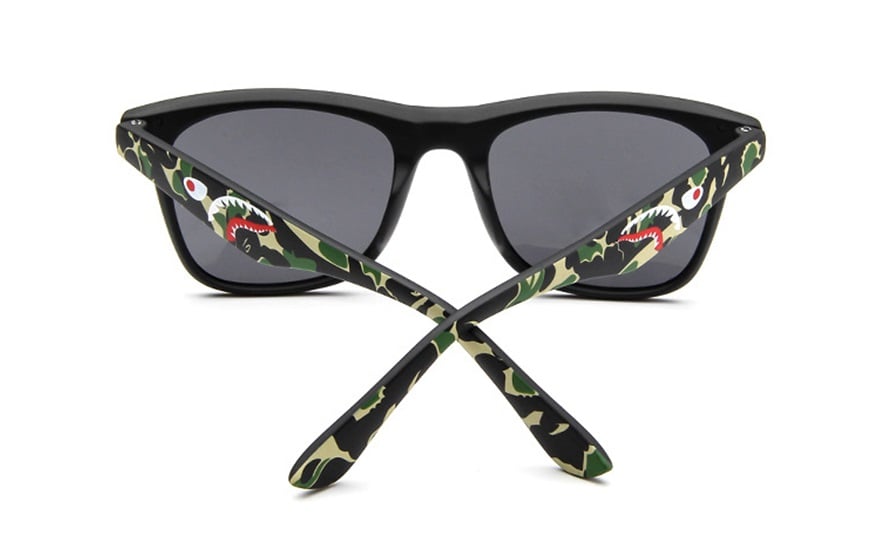 Las patillas de las gafas tienen un diseño de camuflaje.