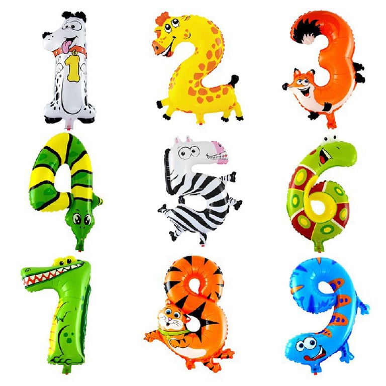 Globos de cumpleaños divertidos - números de animales - 0-9