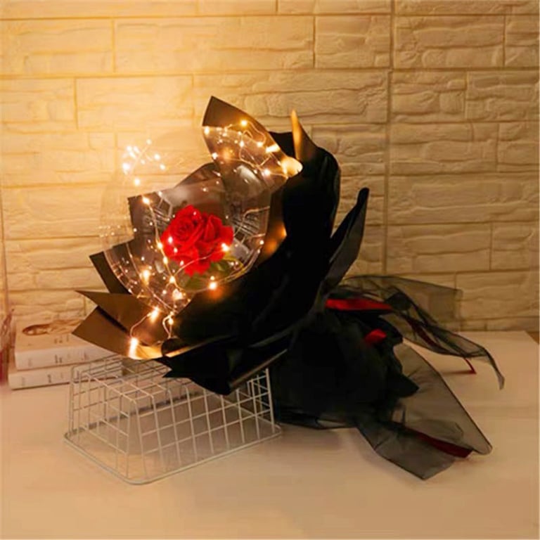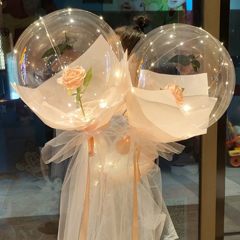 Un globo iluminado con una rosa en el centro destaca por su idea y hermoso diseño.