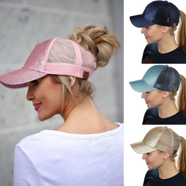 La gorra tiene una abertura para una coleta alta y es ideal para días soleados y lluviosos.