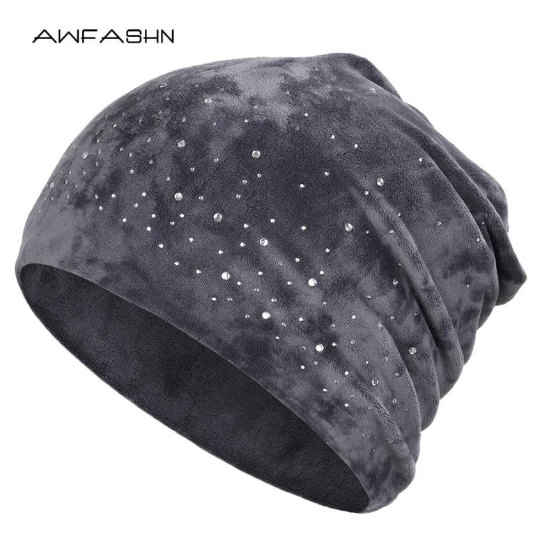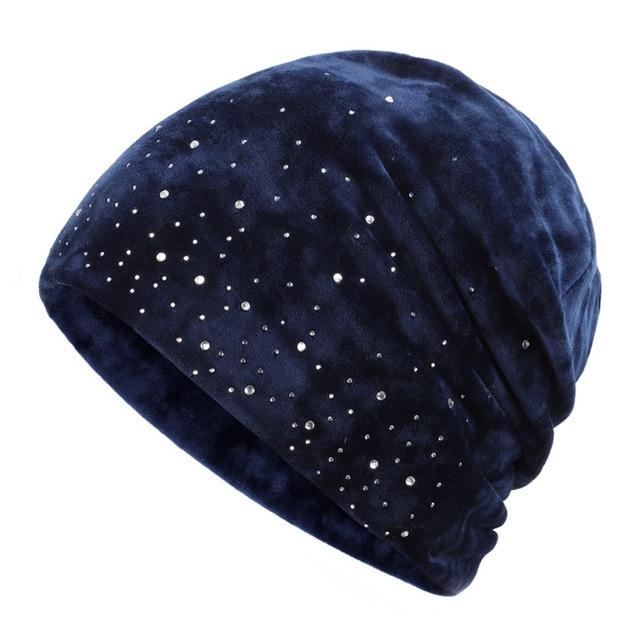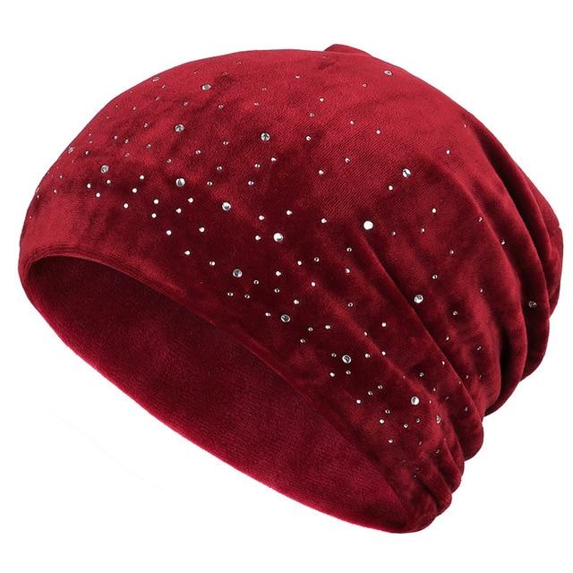 Bonito gorro de mujer con piedras, disponible en varios colores.