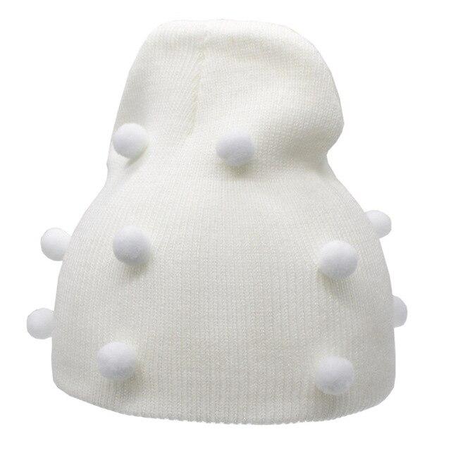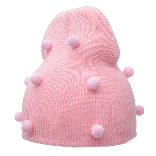Gorro de lana decorado con pequeñas pompones.