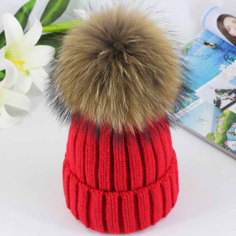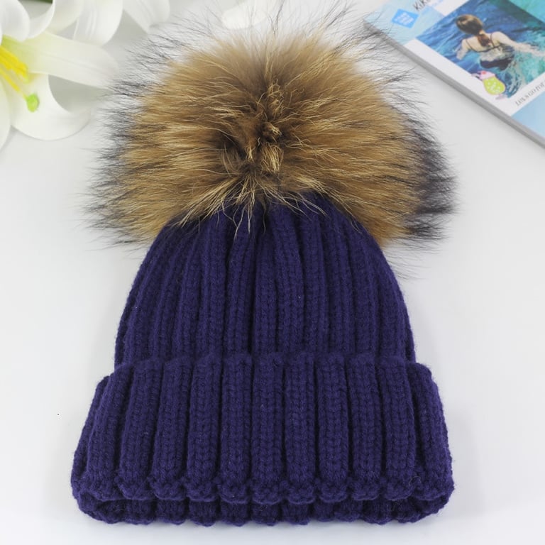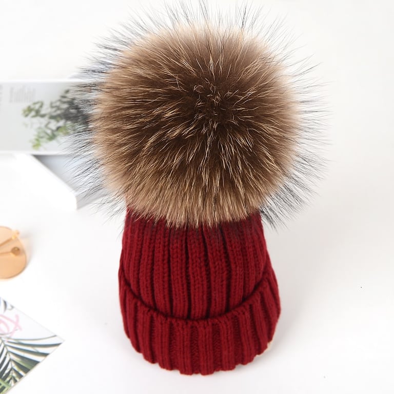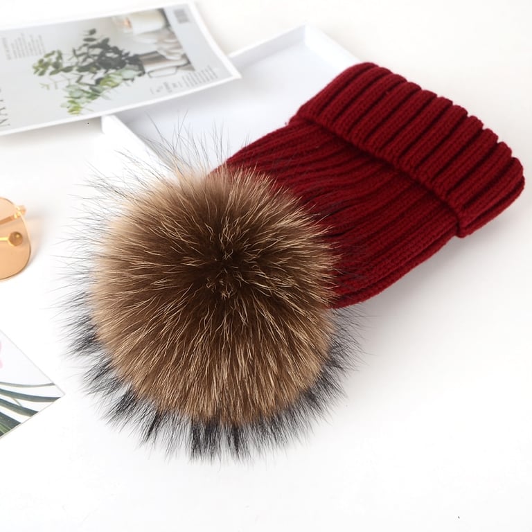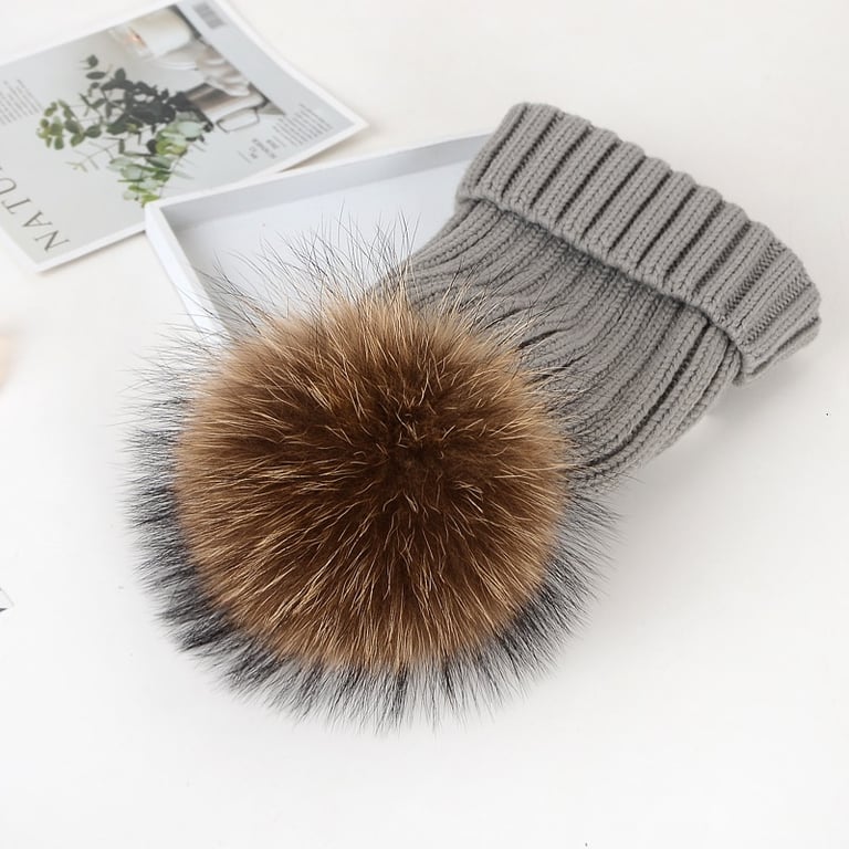 Gorro de invierno de punto para mujer con pompón hecho de piel sintética