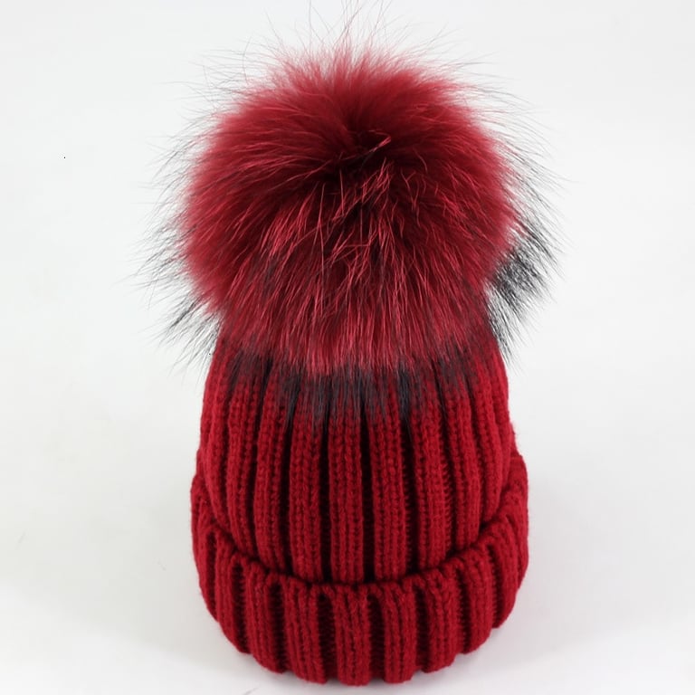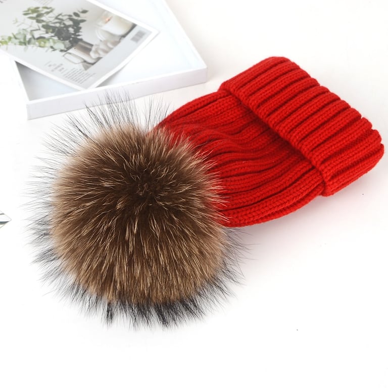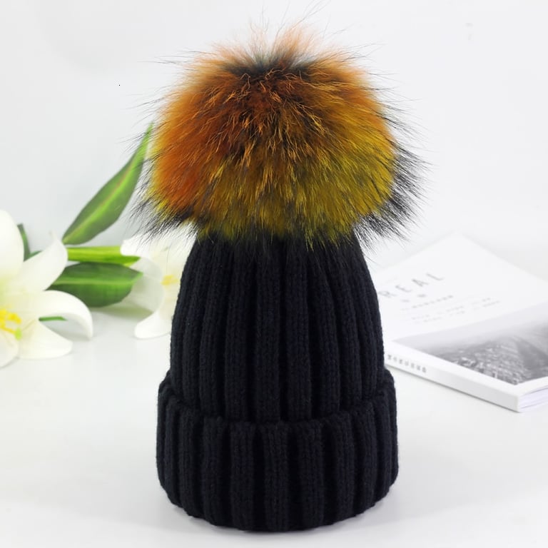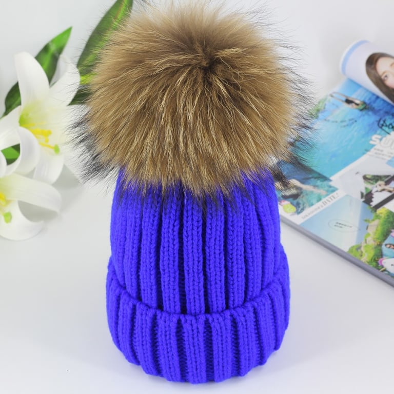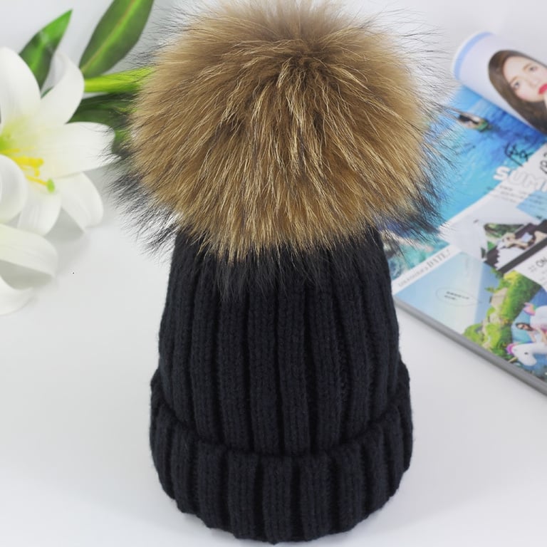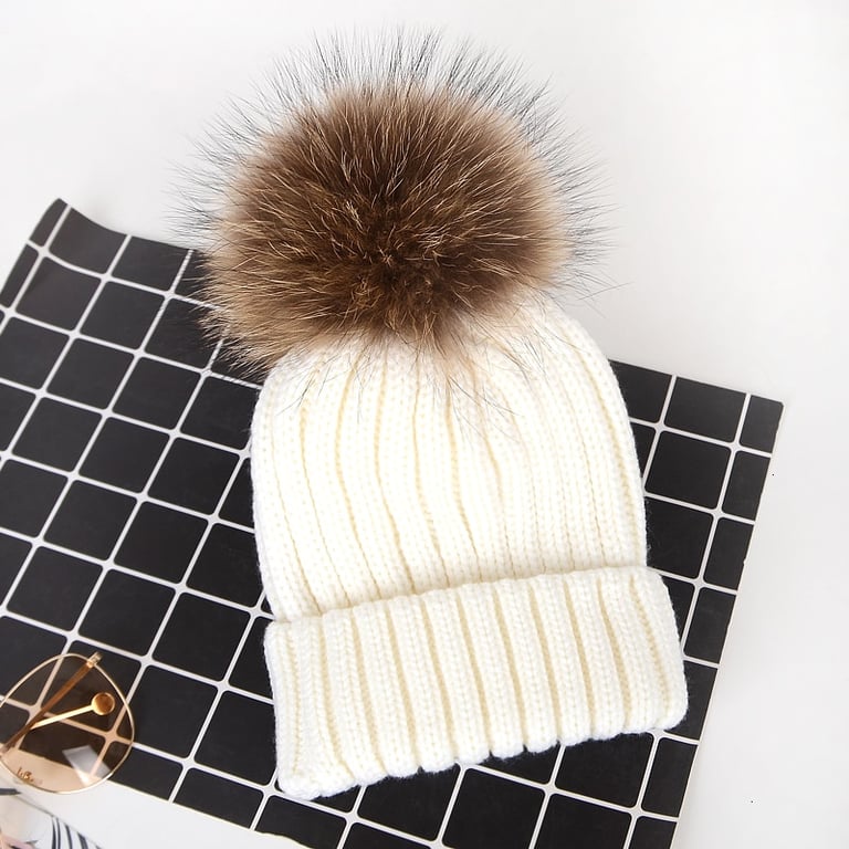Gorro de invierno de punto para mujer con pompón hecho de piel sintética