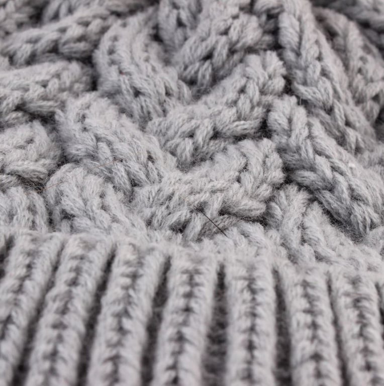 Gorro de invierno de punto para mujer con un gran pompón peludo. Disponible en varias opciones de color.