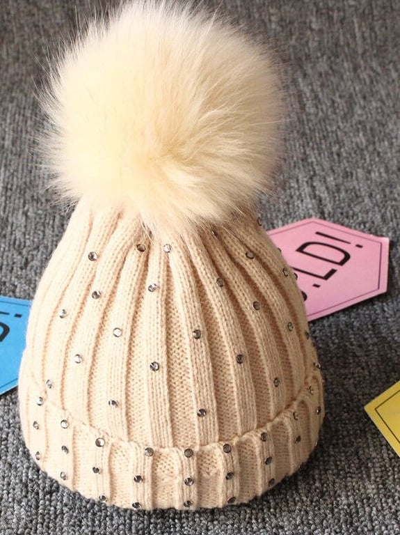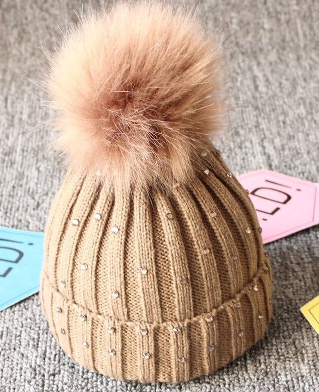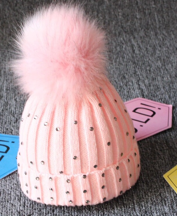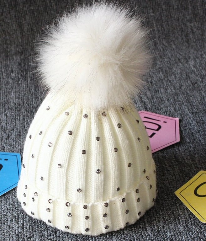 Hermoso gorro de invierno para niños con un pompón peludo.
