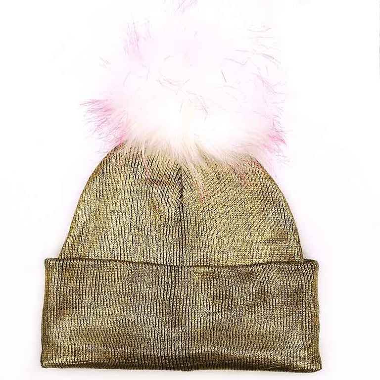 Gorro infantil en color dorado metálico con pompón de peluche.