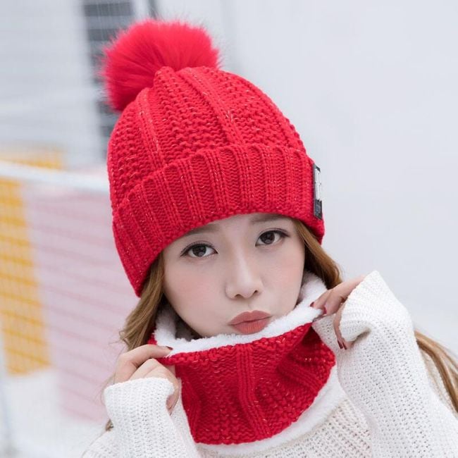 Gorro de lana de invierno con pompón y cuello - 16 variantes