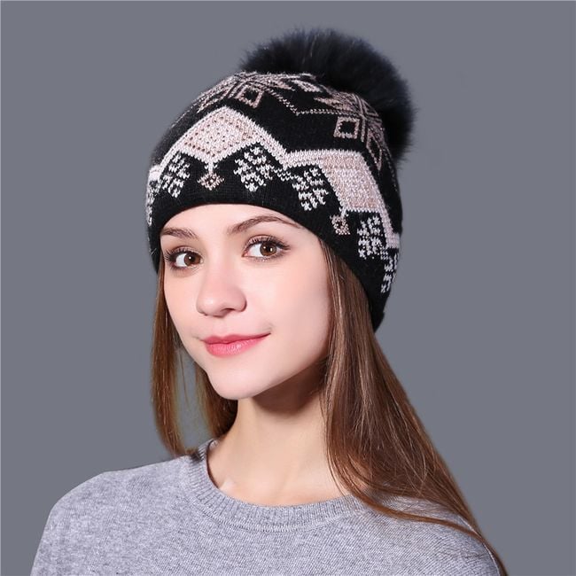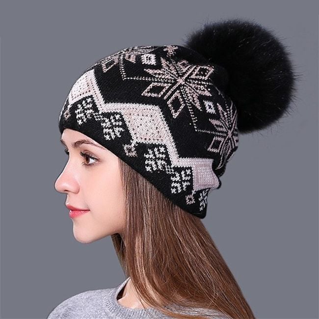 Gorro de mujer con motivo invernal y pompom - 6 variantes