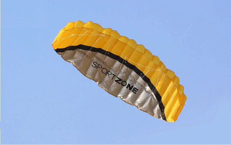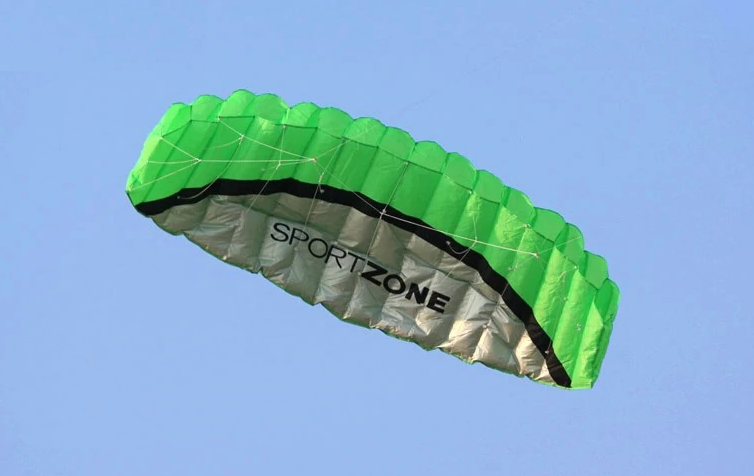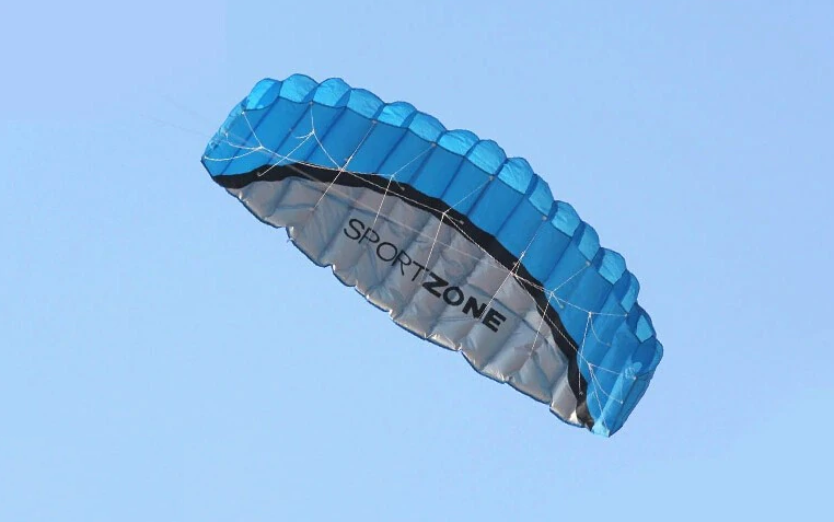 Esta cometa en forma de paracaídas vuela maravillosamente incluso con poco viento.