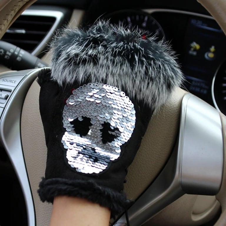 Guantes de moda para mujer con lentejuelas en forma de calavera y forro de piel son una excelente opción para los días de invierno.