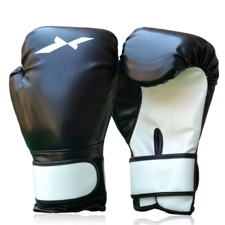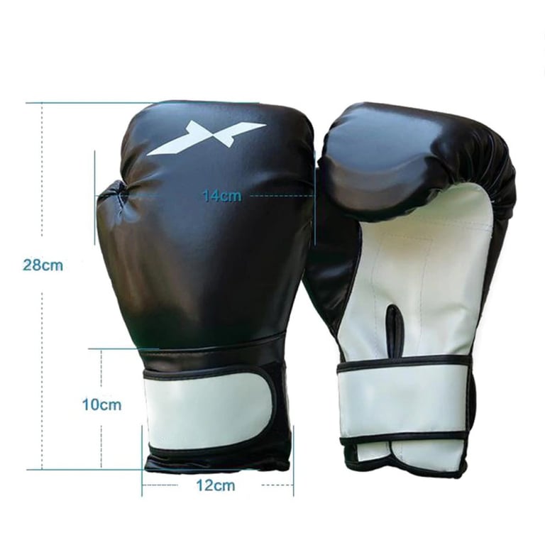 Los guantes de boxeo universales para hombres y mujeres son de cuero sintético, ideales para el entrenamiento básico de boxeo o artes marciales. Miden 28 cm de largo y 14 cm de ancho.