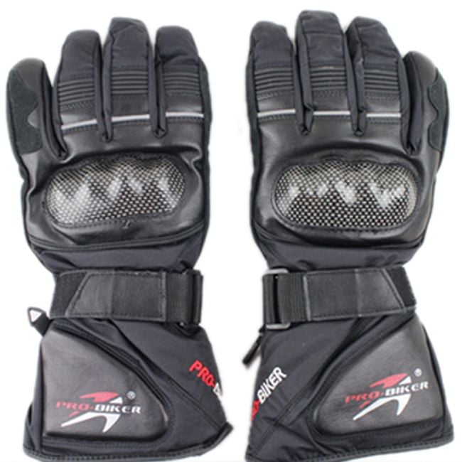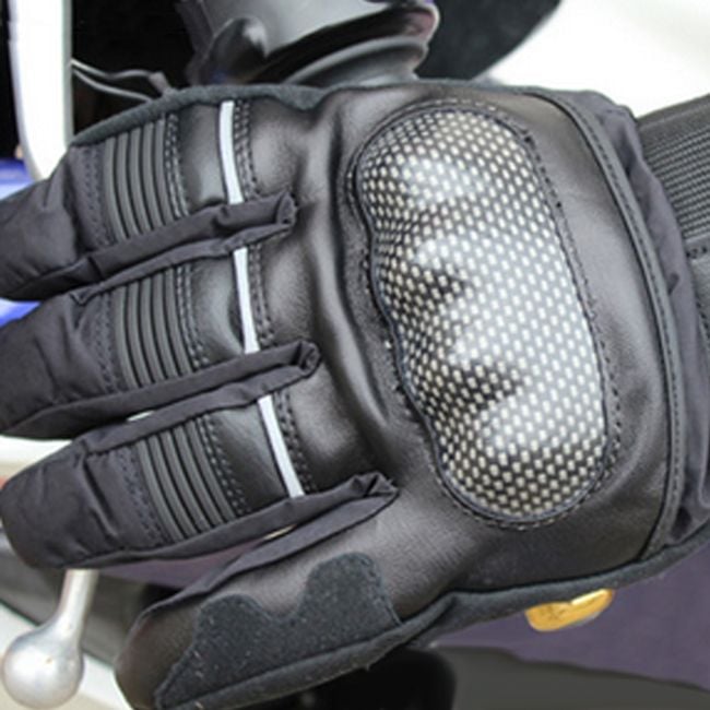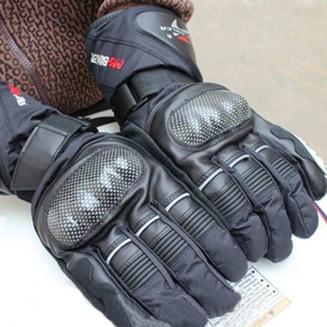 Guantes de motocicleta de alta calidad en color negro, diseñados para climas fríos en invierno y otoño. Las articulaciones están protegidas por protectores duros.