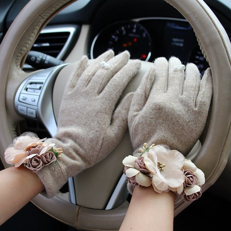 Guantes de invierno para mujer decorados con un complemento floral y perlas. Disponibles en dos colores.