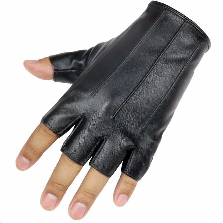 Guantes sin dedos para hombre de cuero PU