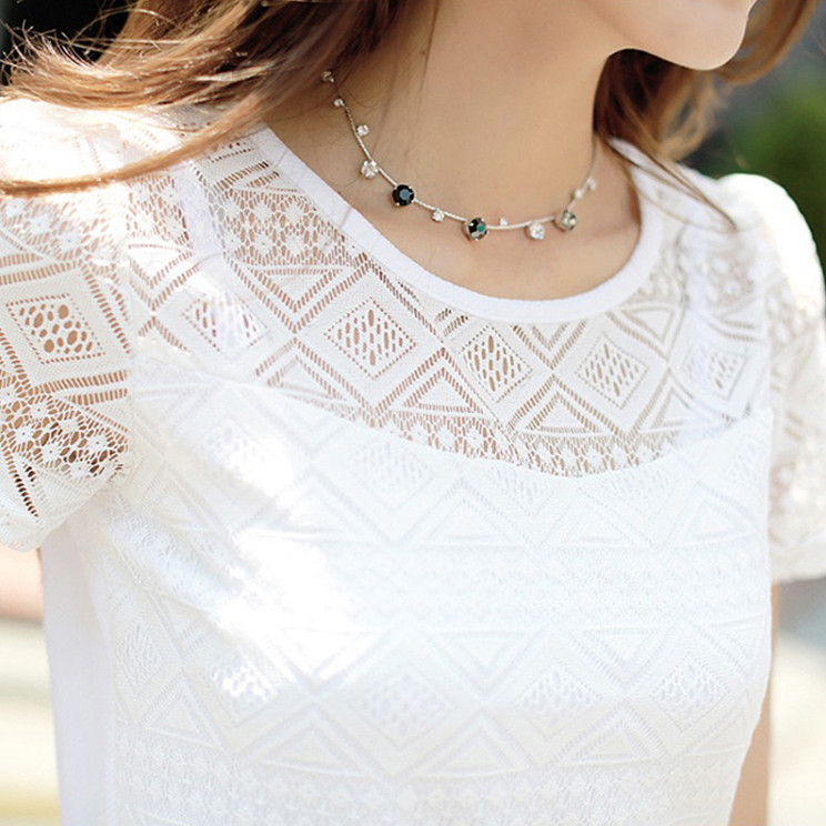Hermosa blusa blanca de encaje con un diseño moderno.