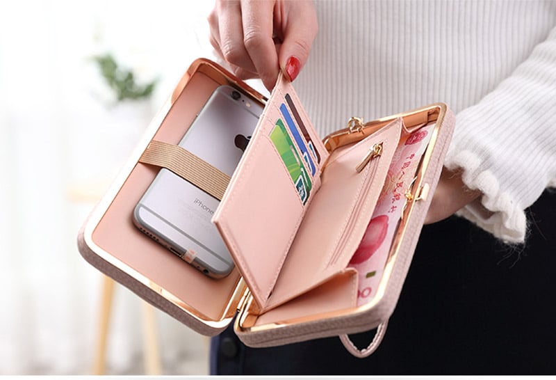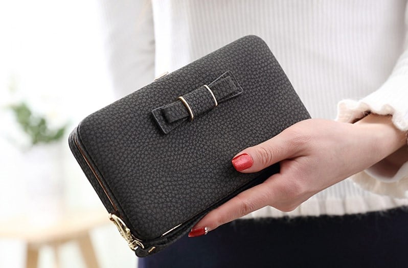 Hermosa cartera de mujer de cuero sintético con lazo, disponible en varias variantes.