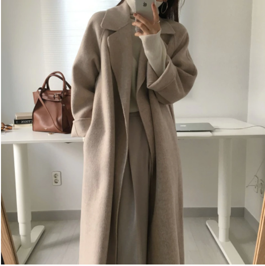 Hermoso abrigo de invierno para mujer, cálido y con lazo.
