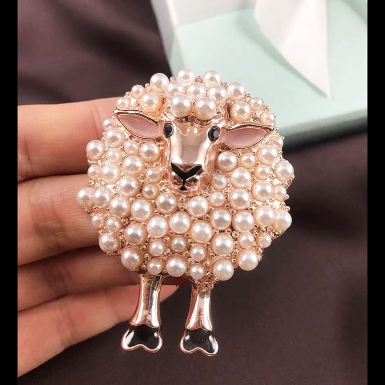 Un broche de lujo con el motivo de una oveja que complementará perfectamente tu atuendo.