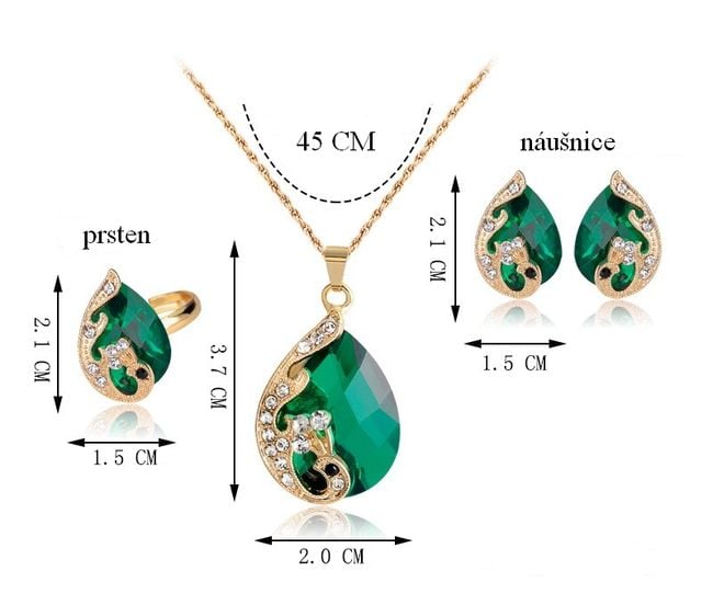 Si deseas un hermoso y moderno accesorio que llame la atención a primera vista, adquiere este magnífico conjunto de joyas originales con motivo de pavo real. Puedes utilizarlo en diversos eventos sociales, bailes, e incluso deslumbrar en una boda. La combinación de estos elementos brillantes crea un contraste interesante. Se puede elegir entre cinco colores diferentes. El paquete incluye un collar, pendientes y un anillo.