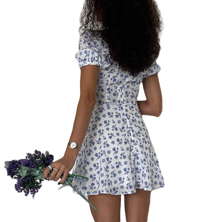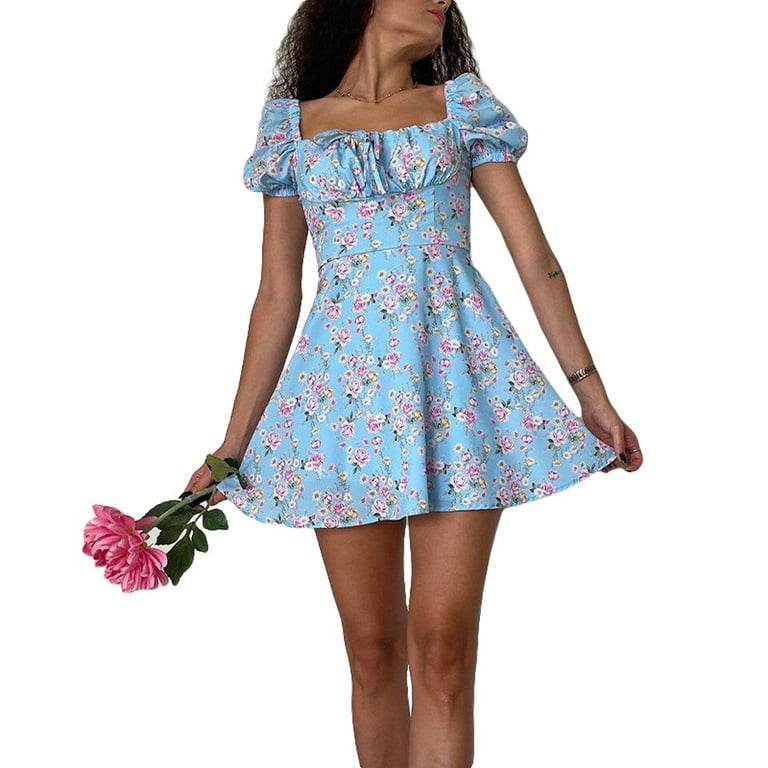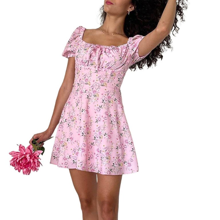 Vestido estiloso con un patrón floral y hombros caídos.