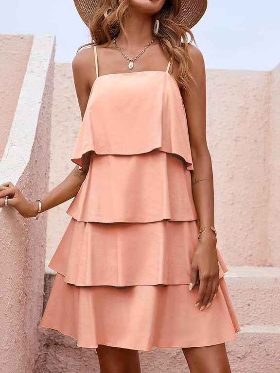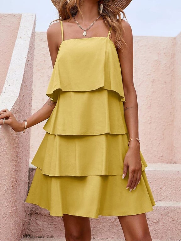 Hermoso vestido de volantes para mujer con tirantes de espagueti.