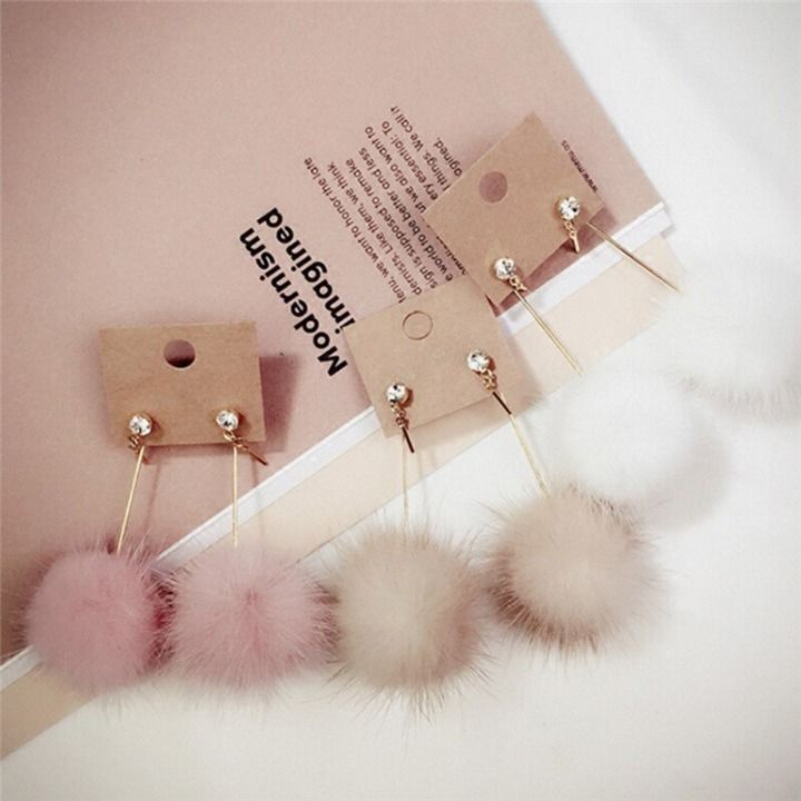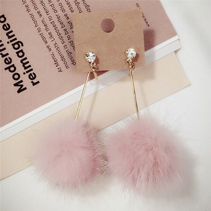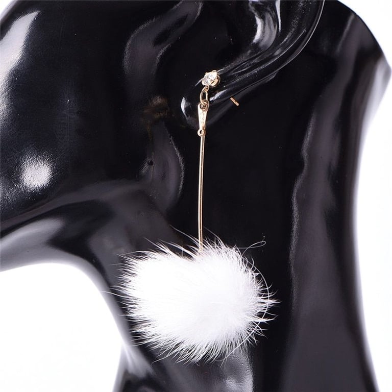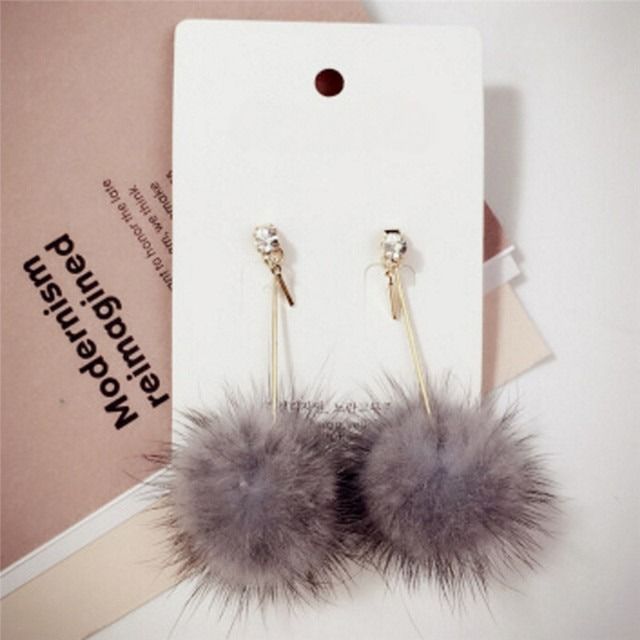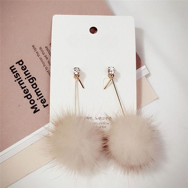 Bonitos pendientes largos con una bola peluda en el extremo.