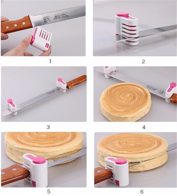 ¿Preparas pasteles con frecuencia? Para una aplicación más precisa de la crema, sin duda aprovecharás esta útil herramienta. Te ayudará a cortar el pastel horneado. Solo necesitas fijar un cuchillo afilado (idealmente con sierra) en ambas partes y podrás cortar. Así podrás preparar directamente cinco capas delgadas, que puedes rellenar con las cremas más diversas. Actualmente no se puede elegir el color, se envía según la disponibilidad de stock.