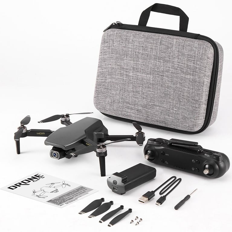 Contenido del paquete: 1x dron, 1x control remoto, 3x baterías, 4x hélices, 1x cable USB, 1x destornillador, 1x plataforma de aterrizaje, 1x bolsa para el dron