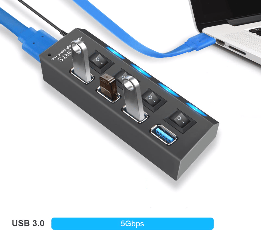 Hub USB con interruptores y señalización LED
